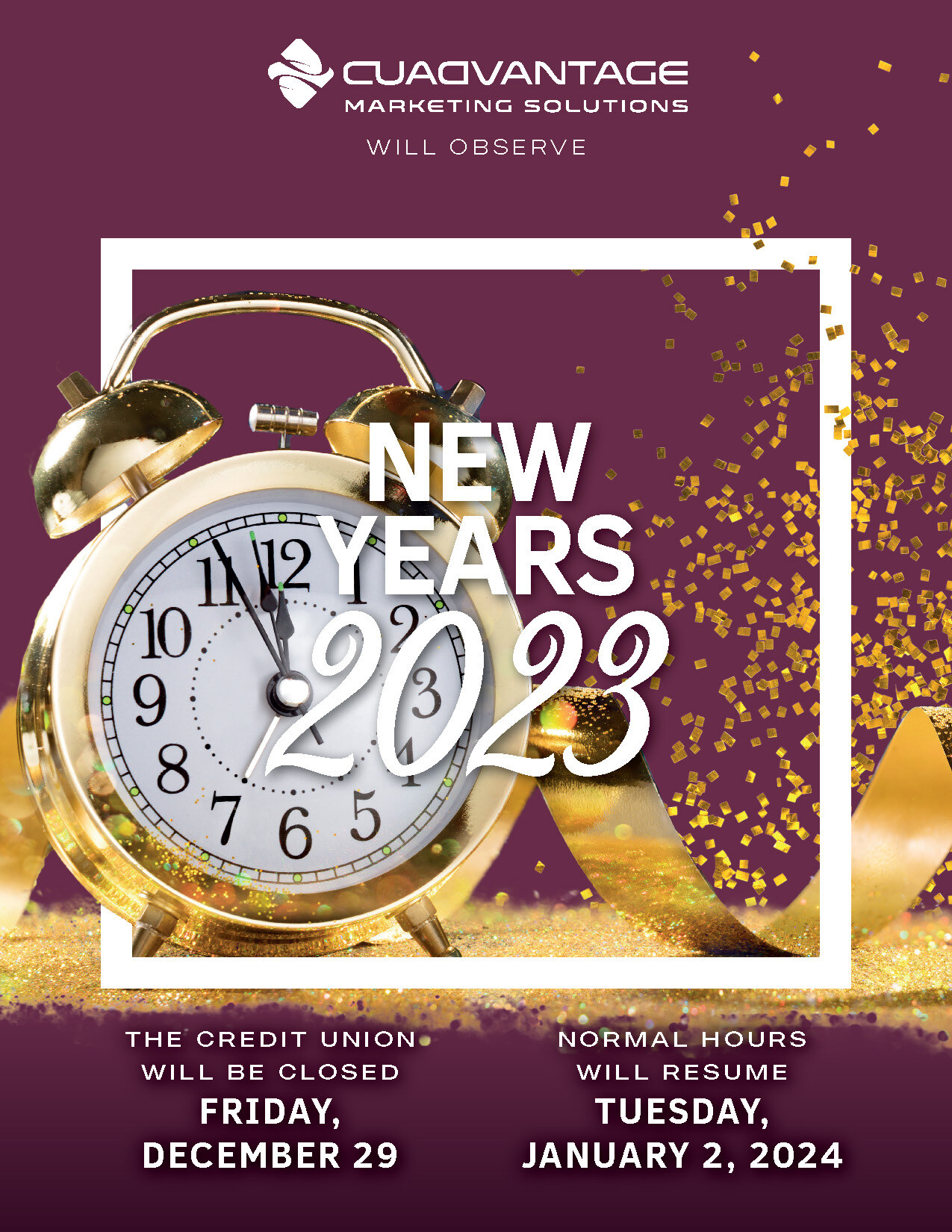 No more last minute holiday closing notices taped to the front door! The entire year is done and ready for you to order and proudly display at your credit union.